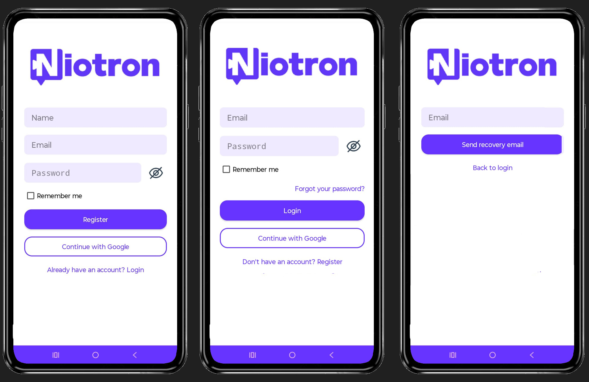- Login & Registration Forms: Easily create fully functional login and registration screens with optional fields, such as name for registration.