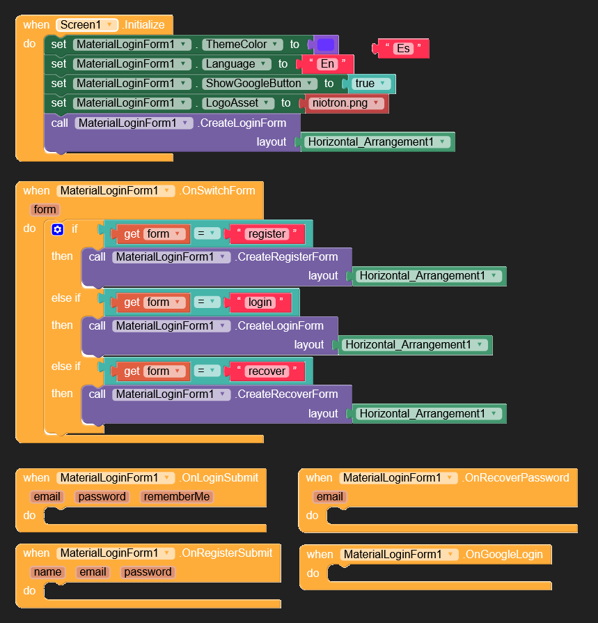 The MaterialLoginForm extension provides a complete solution for creating modern, customizable login, registration, and password recovery forms in your app. Inspired by Material Design, it allows developers to quickly integrate secure and visually appealing authentication screens without writing extensive UI code.