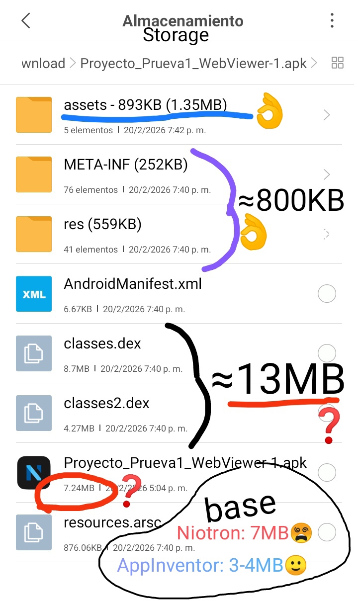 Here, a photo, I leave a brief analysis that I did to one of my projects, after open it as apk/zip metod, only +0.24MB by WebViewer+Html/js/css integration.