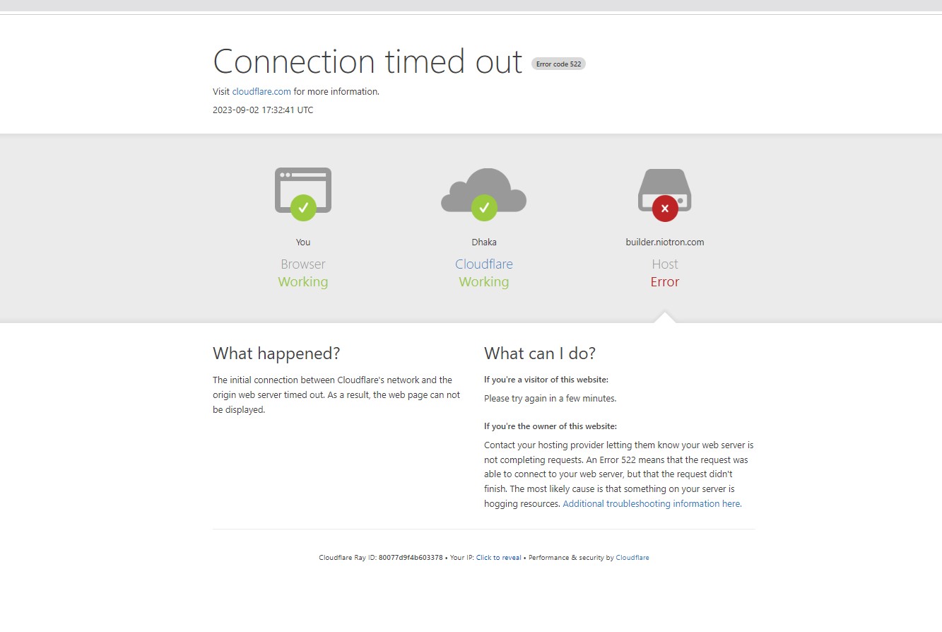3 days i can’t open my niotron site . when i open the niotron crate app they show me this . But i don’t know why this happen.