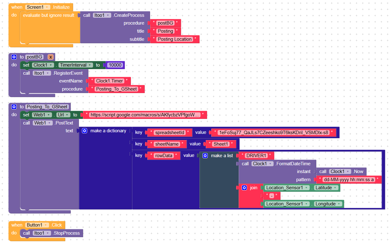 I am trying to upload GPS point to my Google sheet By using Open Source • Background Tasks: Itoo 🚀 - Extensions - MIT App Inventor Community this extension but extension not working
